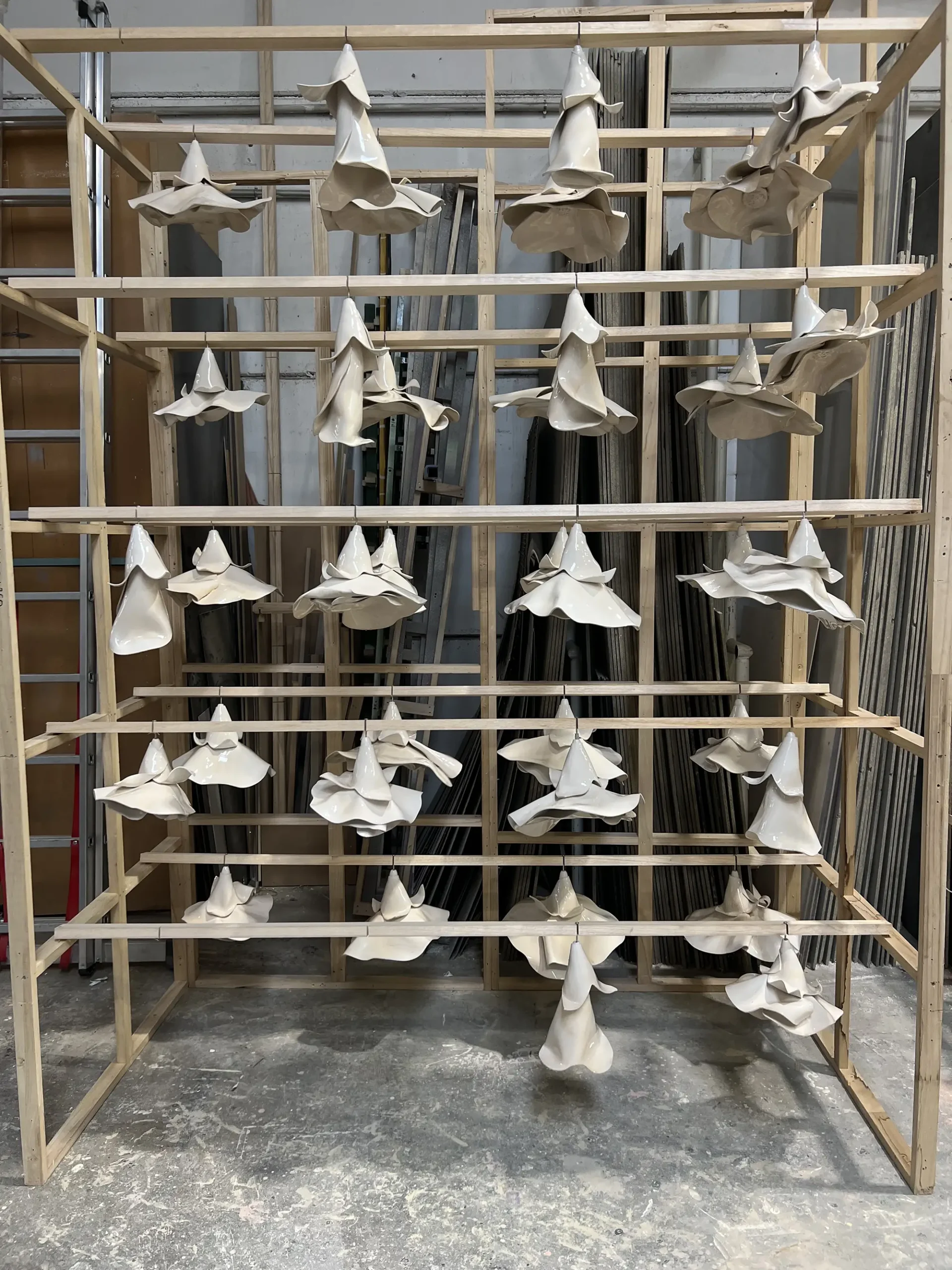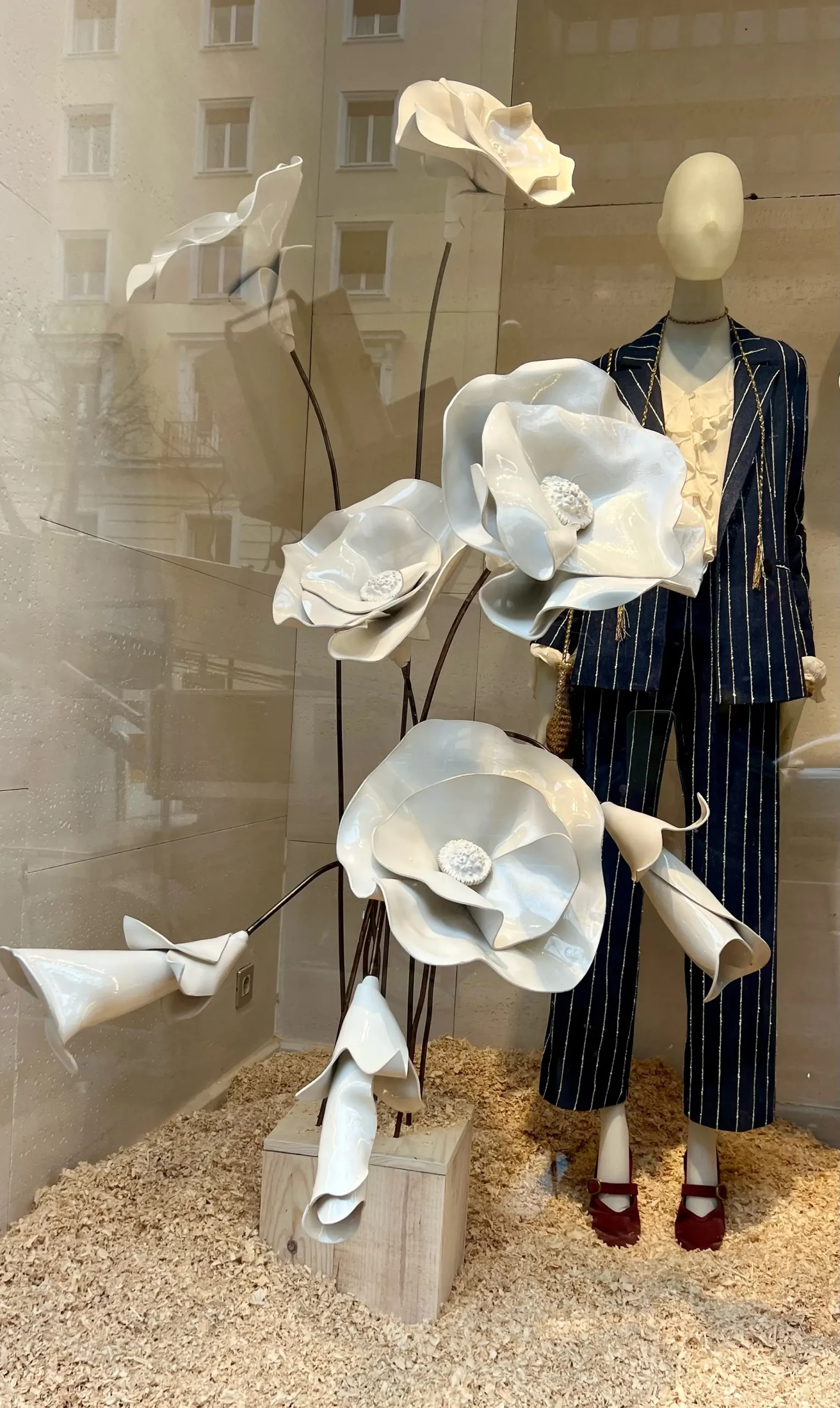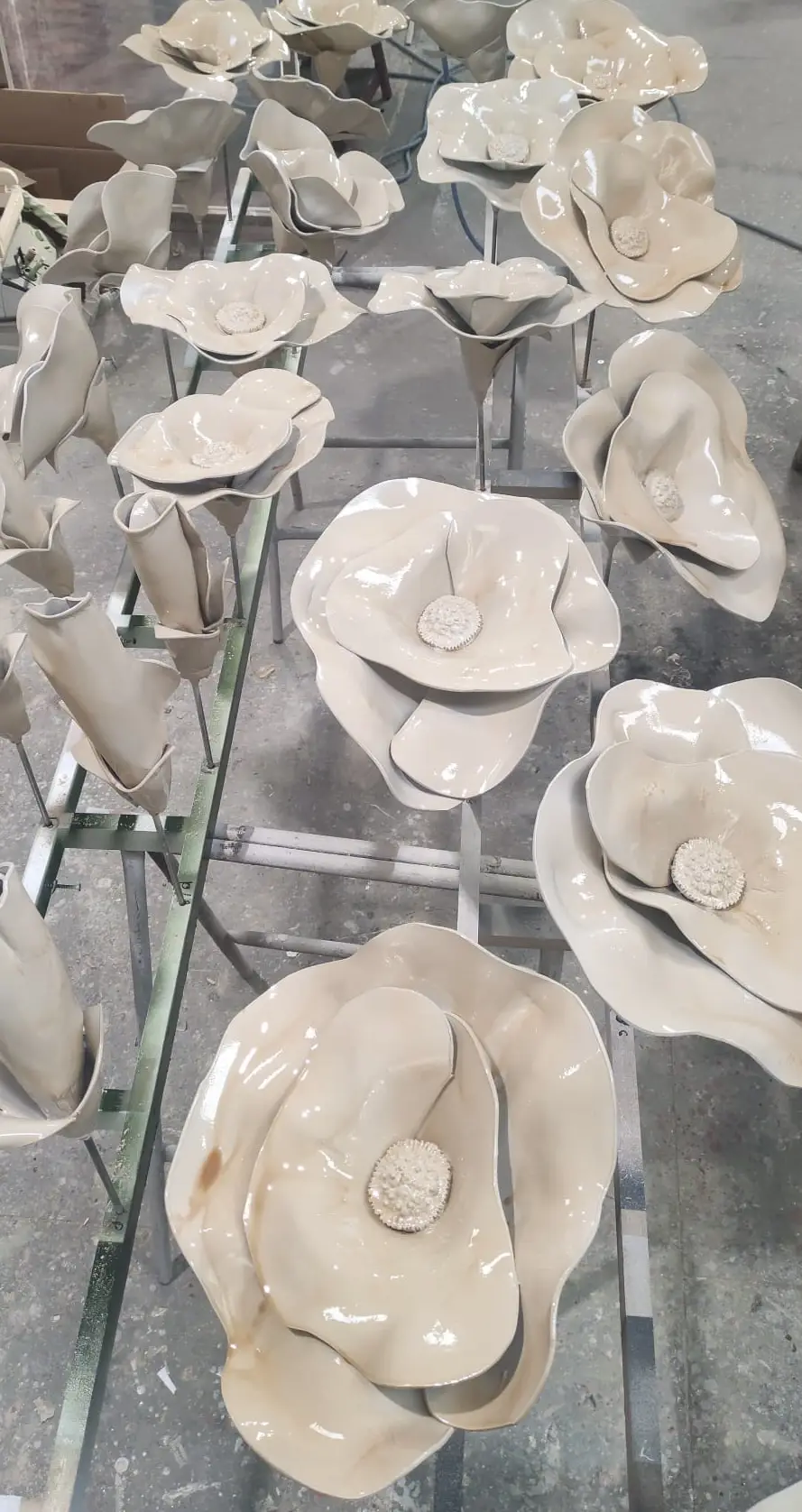 Tras diferentes propuestas en cuanto a formas y tipo de flor, llegamos a este formato de escultura gigante con flores que parecen hechas en porcelana.